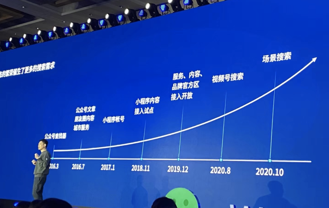 今年微信公開課上,微信搜一搜產(chǎn)品負責人Samuel對此表示,搜索不應(yīng)該被框住,「它應(yīng)該出現(xiàn)在每一個好奇產(chǎn)生的地方。」