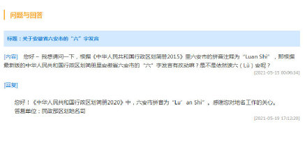 民政部回復網(wǎng)友安徽六安讀Lu