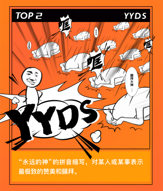 yyds是“永遠(yuǎn)的神”拼音首字母的縮寫,用來表達(dá)對(duì)于某個(gè)人、某個(gè)組織或者某件事最極致的贊美和膜拜。比如在今年的奧運(yùn)會(huì)上,一眾運(yùn)動(dòng)員的神技能、神操作,讓網(wǎng)友直呼中國(guó)隊(duì)yyds!