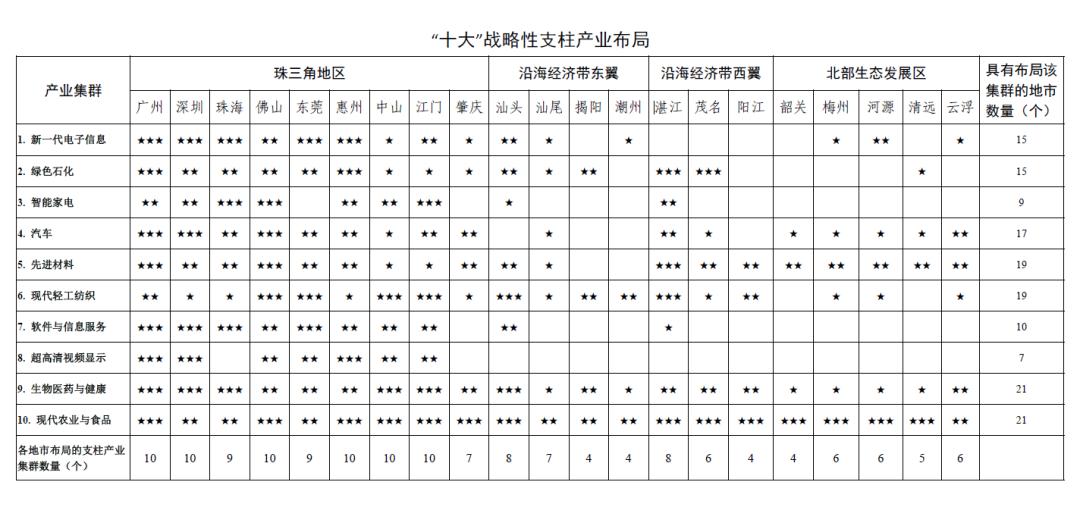 當然,作為經(jīng)濟大省、工業(yè)大省,廣東從全國吸納了大量年輕勞動力。將一部分財政收入反哺用于其他地區(qū)的轉移支付,既是全國一盤棋的思維,也是區(qū)域均衡發(fā)展的體現(xiàn)。05廣東,第一工業(yè)大省。廣東與江蘇都是工業(yè)大省,工業(yè)實力不分伯仲,但支柱產(chǎn)業(yè)卻不盡相同。江蘇以電子、電氣機械及器材制造、化工、通用設備制造、鋼鐵、汽車、紡織、專用設備制造、金屬制品、非金屬礦物制品業(yè)等為支柱產(chǎn)業(yè),十大產(chǎn)業(yè)增加值占全省比重約為7成。廣東則以新一代電子信息技術、汽車、綠色石化、智能家電、先進材料、現(xiàn)代輕工紡織、軟件與信息服務、超高清視頻顯示、生物醫(yī)藥、現(xiàn)代農(nóng)業(yè)與食品等為支柱產(chǎn)業(yè)。