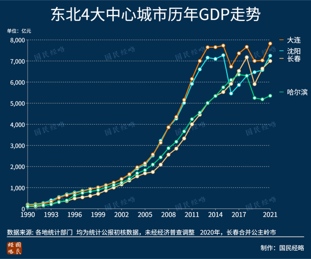 不過,近年來,東北經(jīng)濟強市被其他省會陸續(xù)趕超。加上前幾年經(jīng)濟普查,原本已經(jīng)突破7000億的多個東北地市,GDP遭遇擠水分,又回到了重新攀上7000億的歷程。