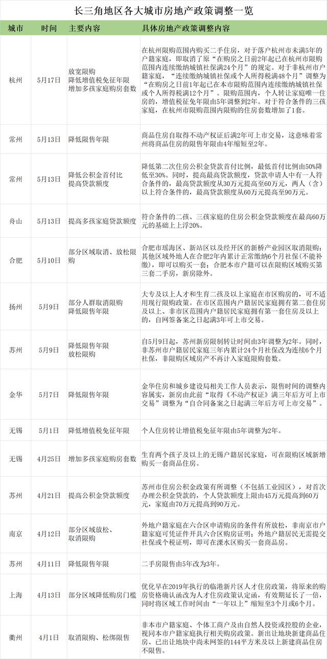 杭州、蘇州、南京都松了,長(zhǎng)三角城市上演樓市松綁“大比拼”