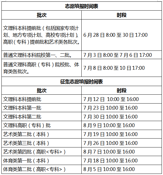 2022-06-14 17:57:53閱讀()新安晚報(bào)2022年安徽省高考目前正在緊張閱卷過(guò)程中,6月13日下午,安徽省教育招生考試院發(fā)布《安徽省2022年普通高校招生考生志愿網(wǎng)上填報(bào)辦法》,今年安徽高考志愿填報(bào)將從6月28日正式開(kāi)始提前批次的志愿填報(bào),本科批次志愿填報(bào)時(shí)間為7月3-6日,高職??啤Ⅲw育類各批次填報(bào)時(shí)間為7月8-10日。在此期間還將安排征集志愿填報(bào)。在此之前,根據(jù)安排,6月17日至24日,安徽省將進(jìn)行志愿網(wǎng)上填報(bào)模擬演練。