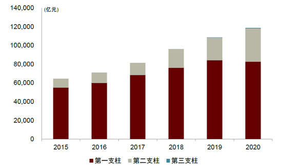 我國(guó)養(yǎng)老體系中第一支柱規(guī)模較大 圖片來(lái)源:中金點(diǎn)睛