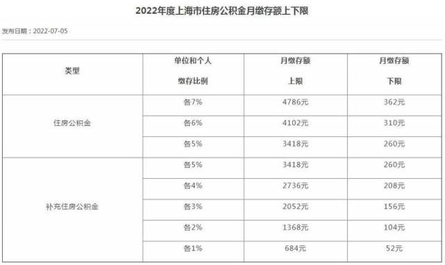 另外,上海住房公積金和補充住房公積金繳存基數(shù)最高不超過34188元,最低不低于2590元。住房公積金按職工本人和單位各7%的繳存比例所對應的月繳存額上限為4786元,月繳存額下限為362元。