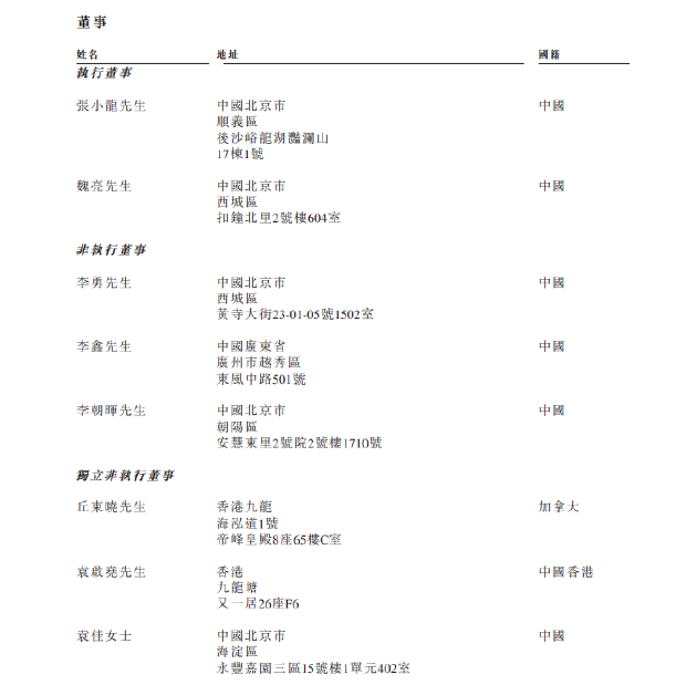 招股書顯示,張小龍、魏亮任執(zhí)行董事,李勇、李鑫、李朝暉任非執(zhí)行董事,邱東曉、袁啟堯、袁佳任獨(dú)立非執(zhí)行董事。