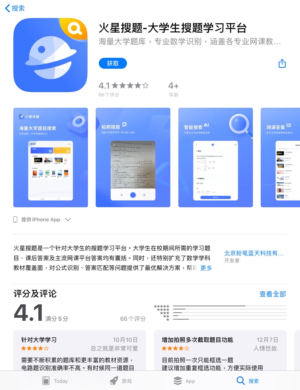近日,粉筆職教旗下大學(xué)生搜題學(xué)習(xí)平臺(tái)火星搜題進(jìn)行了版本更新,其題目涵蓋英語(yǔ)政治高數(shù)及各類(lèi)公共課、專(zhuān)業(yè)課。據(jù)蘋(píng)果應(yīng)用商店開(kāi)發(fā)者信息介 ...