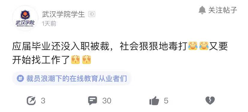 在線教育被曝開始裁員潮,應(yīng)屆生:我壓根兒還沒入職
