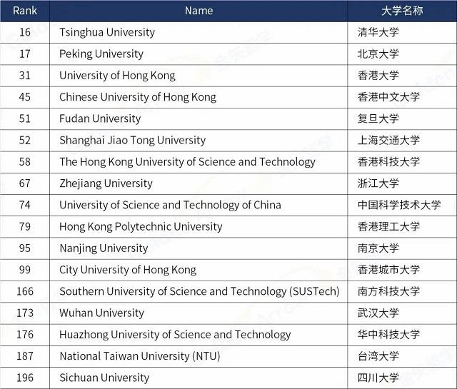 7所中國大陸高校入榜世界前100名